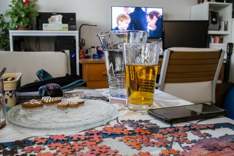 Je tu ráno. Ještě v noci jsem poskládala první puzzle. Pouštím se do druhých a koukám u toho na vánoční filmy a pohádky. Najím se. Přiznávám, mám líný pyžamový den. Složeno. Sice mám odpočinkový den, ale i tak jdu cvičit. Večer je bolavý. Vytáhla jsem staré puzzle, abych měla co dělat.