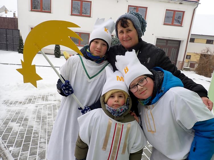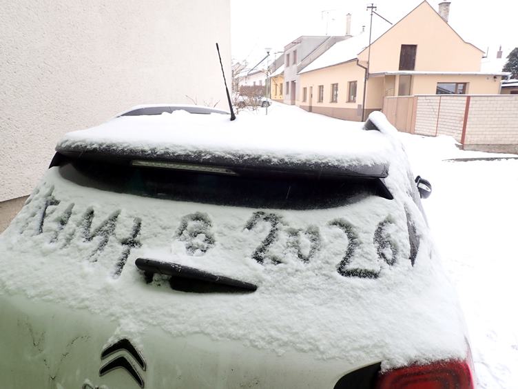 Moje namrzlé nohy... Tříkralová sbírka... Hodně sněžilo a z komína nám vytekla voda... Obecní traktůrek v akci... Oběd... Ptákům jsem nalouskal pár vlašských ořechů...