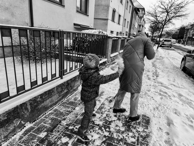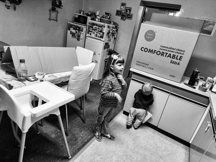 1. Počasí vůbec nebralo ohledy na můj zdravotní stav a připravilo mi ranní rozcvičku 2. Trochu jsem si ten tělocvik zpříjemnil 3. Filipa nová výbava obyváku docela zaujala 4. Když začal divočit, podařilo se Anežce ho zklidnit a moc hezky si spolu hráli 5. Já uklízel sníh na dvoře, Pavla na chodnících a Anežka ho po nás házela ze zálohy 6. I anděla jsme jí dovolili 7. Večer jsme z krabice od mého nového kancelářského křesla začali stavět domek 8. Do hrubé stavby jsme rovnou instalovali koberec 9. A ještě před spaním jsme stihli kolaudaci
