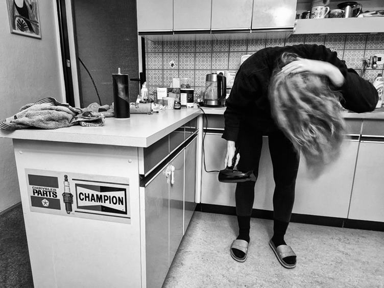 7. Sušení umytých vlasů probíhalo v kuchyni, bo v koupelně je díky nefungujícímu kotli dost zima