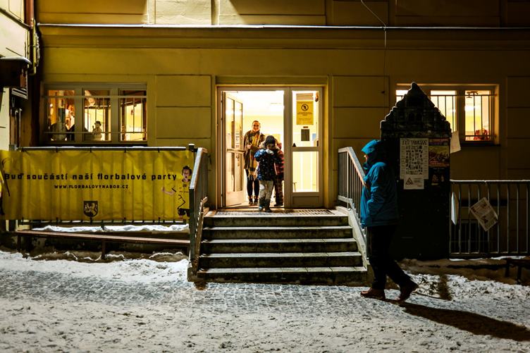 na sněhu, na břečce