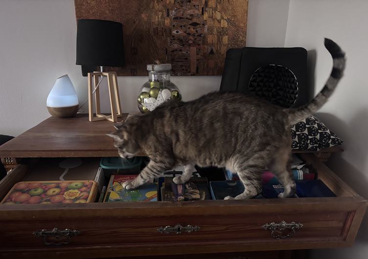 Dobré ránko 😻 Cítim sa nanič , ale tlak je dobrý 🙏 Zostávam v posteli, Hugi ma opatruje 🥰 Prezerám fotky a smútim 🥹 Hugi využil otvorený šuflík na komode a skúma terén 🙈 Rozosmieva ma 🤗 Manželín mi robí čaj a k tomu pridáva čokoládku - môže byť 😍 Nevládzem fungovať a tak líham opäť do postele - Hugi stále pri mne 😍 Vyberám hudbu na pohreb a počúvam clivé piesne ktoré ma zas a znova rozplačú 🖤 Mením aktivitu a idem čítať 🙌 Hneď úvod knihy ma však dojíma ešte viac 😔
