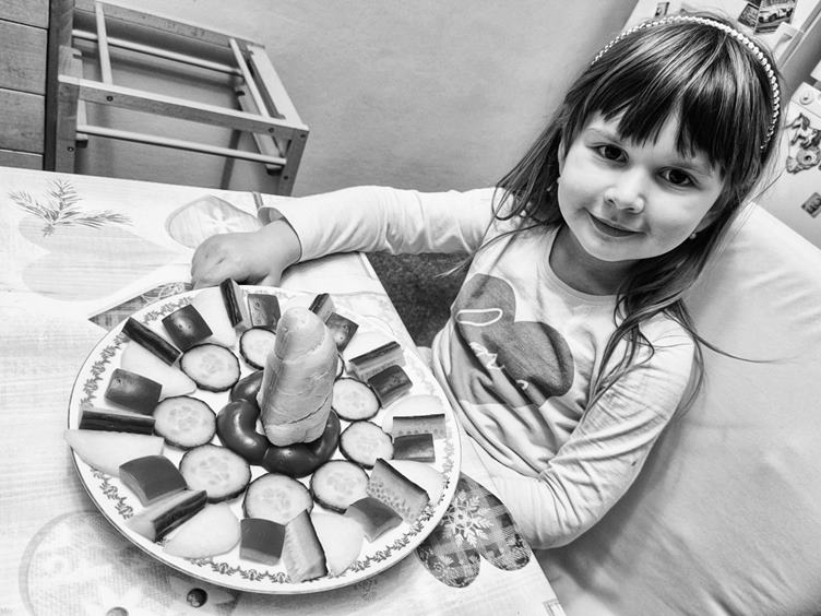 7. Anežka zas chtěla na večeři zeleninu, tak jsem se jako vždy vyblbnul s aranží