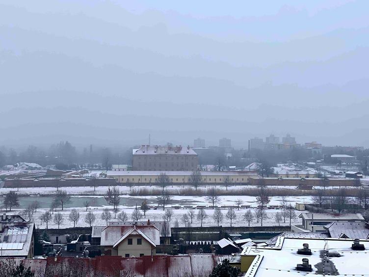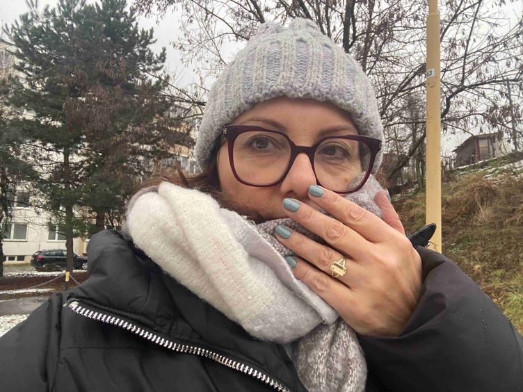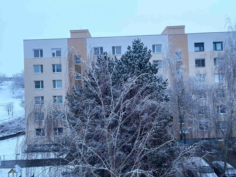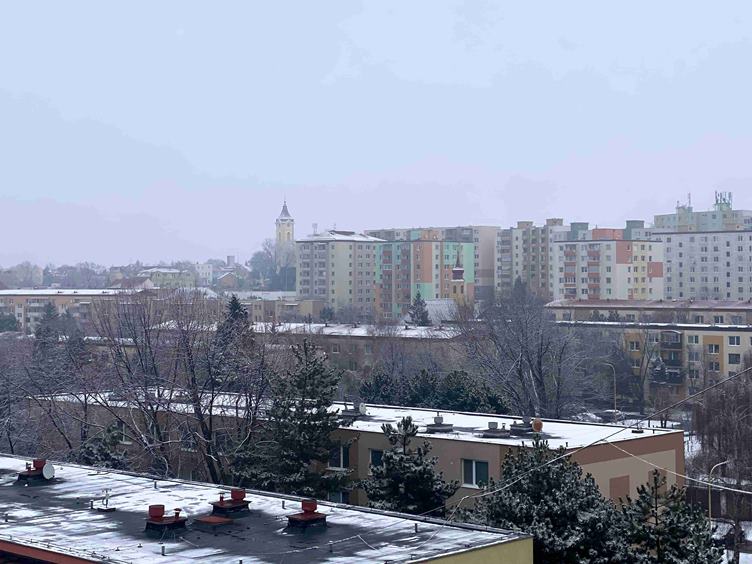 Ráno je krásne bielo * a bielo mám aj doma * u Aďky - výhľad z obývačky si budem chodiť užívať (ja nemám pekný žiaden) * výhľad z kuchyne * výťahom dole * poobede idem na nechty * hráme sa s fotením - takáto farba je u mňa nezvyk * stále sa s ňou stotožňujem :))) * a doma dávam francúzsky koláčik s čajom