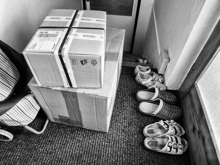 3. Soused Adam si k nám nechal doručit botky do práce - je hasič