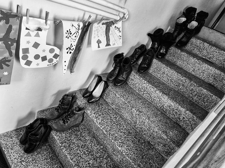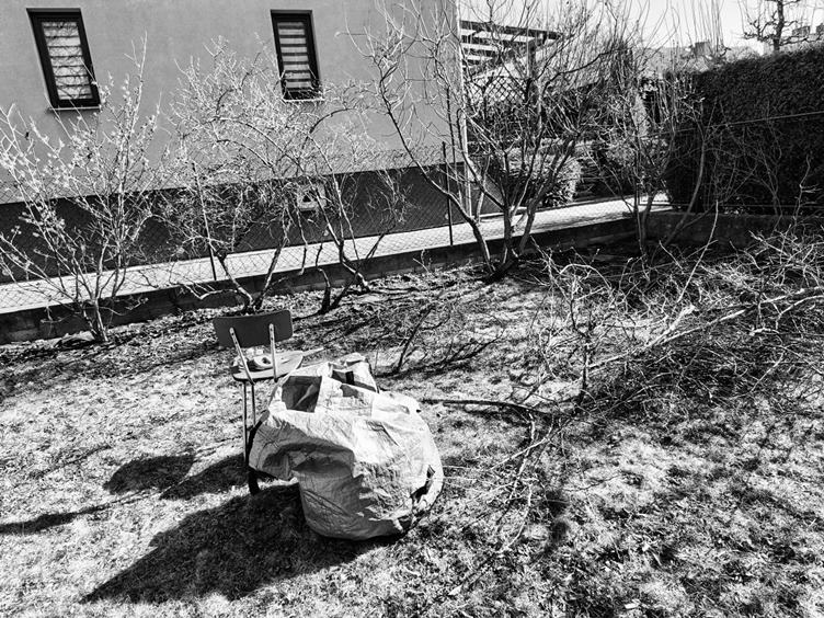 1. Filip se vzbudil zbytečně brzo na sobotu 2. Pro Anežku si dopoledne došla Áďa, Anežka u nich bude dneska i spát 3. D hmyzího domečku se nám stěhují čmeláčci 4. Pokračoval jsem i přes silný vítr v prořezu a zpracovávání větní z keřů 5. Vítr nám po dvoře kutálel i prázdnou bečku 6. Zatímco jsem byl venku na větru, měla Pavla dost práce uvnitř 7. Filip už celkem slušně jí sám, ale já osobně na to nemám nervy 8. Pavla jela na generálku Orient show, babi šla na nákup a my zase zůstali s Fildou doma sami 9. Znělka z Bluey ho spolehlivě roztancovala jako vždy