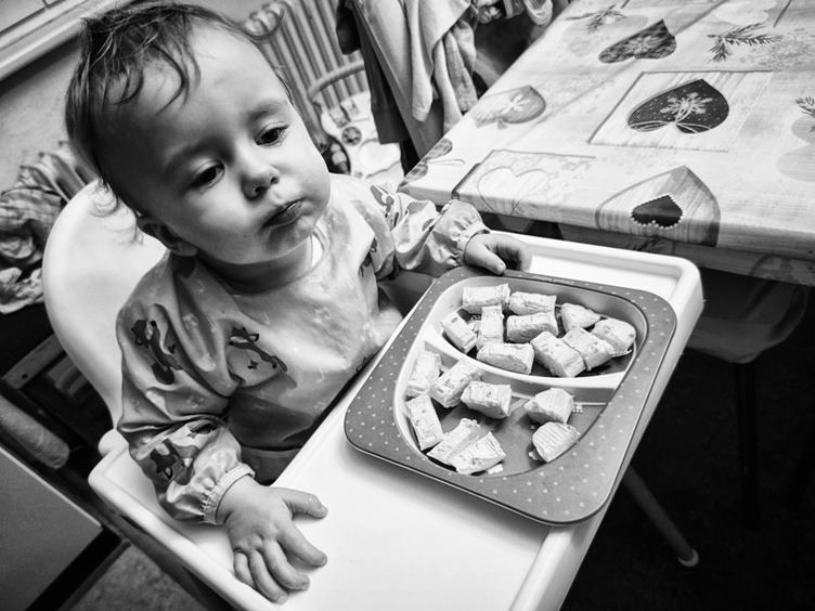 1. Táto, tu sněženku jsem dělala já! 2. Složení mých nákupů se dost změnilo 3. V tomhle obchodě na Slovaně je mezidveří něco jako parkoviště na pejsky 4. Filípek při snídani otravoval panenky 5. Na přebalování si už chystá věci sám 6. Dneska se nějak rychle utahal a usnul mi v náručí 7. Po probuzení si zalezl za babi a snědl jí puding 8. Jedna z jeho oblíbených večeří je rohlík se Zálesákem 9. To nespí, ale přemýšlí jak daleko ho nechám zalézt, než ho vytáhnu za nohy