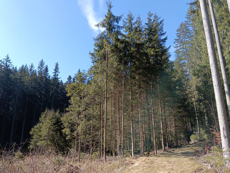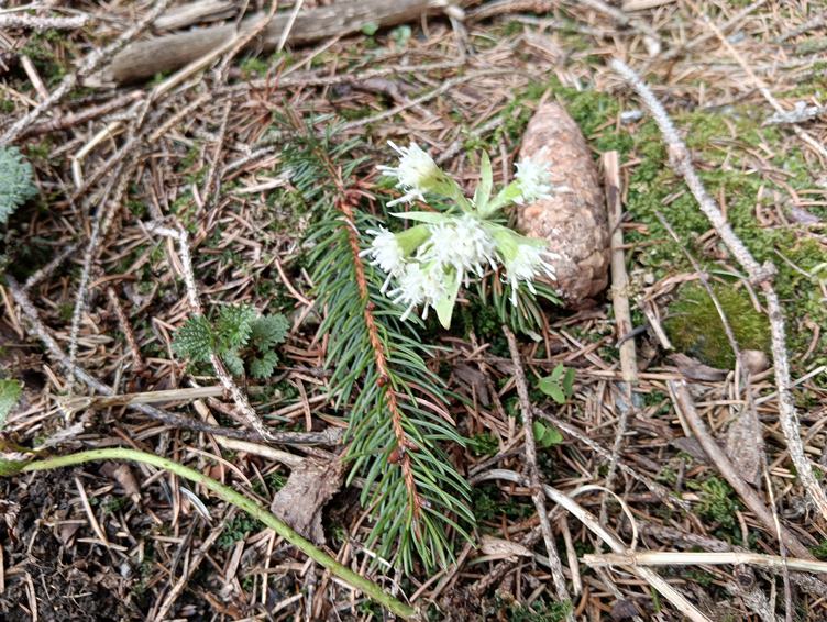 Přijel jsem na Hamry. Jsou Velikonoční svátky. Čertík. Lorinka. Rostou devětsily. V lese. Některé mohutné smrky hodně pamatují. Rozkvetly i další květiny. Blanka.
