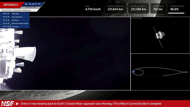 Ještě není čas na letní gumy … stejně zase jedu MHD a potměšile sleduji kolony aut … dnes jen 1,5 hodiny … už nemusím mít náplast na obličeji … sluníčko mě vytáhlo ven … u garáže hrají kluci fotbálek … je docela pěkně … ale děsná zima, podíval jsem se na teploměr na sluneční straně a málo se oblékl … ve 21:15 překročil Orion polovinu cesty zpět na Zemi …