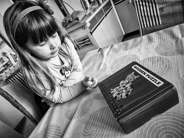 7. Anežka ode mě dostala za odměnu kočičí puzzle, ale nešlo jí to, tak jsme ho nakonec doskládal sám