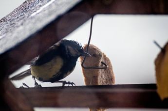 Hnusně! Tak se dá popsat dnešní den. Psa by člověk nevyhnal, ale co s ní, když bydlí venku? Celý den prší a je zima. I sýkorky opět navštívily krmítko. A večer se mi daří vyděsit Maťu... (až se jí hlava rozmazala)