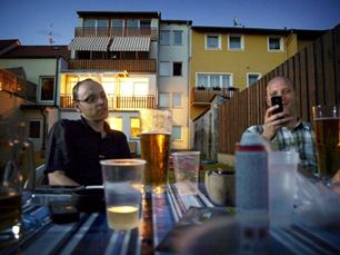 Dopolední paprsky. Šálky na čaj a starý foťák. Je funkční a chystám se s ním fotit. Pracovní foto kavárny, pro kterou dělám leták. K večeru sedíme u Elišky na zahradě a dopíjíme sud z rozlučky se svobodou kamarádů. I večer je přes 20 stupňů a nemáme chlazení, takže pivo chladíme ledem. Opilost se dostavila rychle. Ze zahrady je vidět socialistická dominanta Budějc - hotel Gomel. Jsem doma a můry míří za světlem. Opilý pohled z okna.