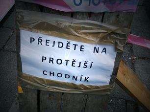 Dobré ráno, růžový (ne)příteli. Naštěstí stačí slabší kalibr. V nabídce knih žádná nepoutá můj zájem, nejinak je tomu u pohádky v ruštině - alespoň jsme ale zabili hodinu. Cestu do jídelny nám o pár metrů prodlužuje už nějakou dobu lešení a tenhle papír. Po obědě zase za trest ve škole až do tři čtvrtě na pět, koukám z okna a nenávidím náš rozvrh. Odpoledne mě udržuje vzhůru kafe (a nebo taky vidina toho, že za chvíli už budu konečně doma!).. a lovím další "prostějovskou" nálepku Baníku.