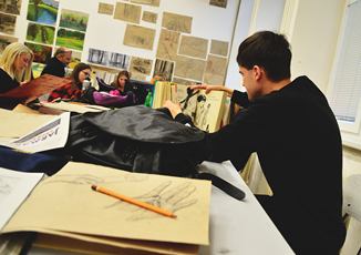 Ráno do školy za tmy... všude světýlka a "Vánoce". Ve škole už se zase rozjíždí film klub. Figurální kreslení, kreslíme ruku, venku dneska poprvé (ne)nasněžilo. :)