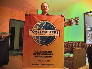 Jindra s vlajkou toastmasterů... Pohled na staveniště před naší direkcí... Můj stínový hrníček ve foto dne na WOL... Řídí DĚDEK, kolega... Kříž od lampy na chodníku... Malá oslava, kluky učím pózovat při sfoukávání svíčky... Táta nastavuje elektronické šachové hodiny... Bába chytla penaltu...