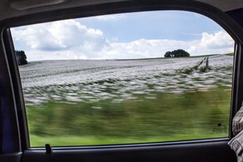 1) svítání, 2) snídaně, 3) komár v práci, 4) pracovní zátiší se svačinou, 5) jedeme do Telče instalovat moji výstavu, 6) 7) s instalací výstavy mi pomáhají přátelé, 8) návštěva u známých v Třešti, 9) večeře