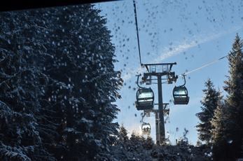 Dnes sme sa prebudili do krásneho slniečkového rána. 1. Kabínkou sme sa vyviezli hore a čumeli sme na tie panoramata. Tu sme včera jazdili? 2. Hneď sme dali spoločnú foto. 3. Mrzne, tak sa zasnežuje. 4. Ale je krásne, moja najobľúbenejšia zjazdovka s vyhrievanou sedačkovou lanovkou :o). 5. Ako zistíte koľko je tam psov? Spočítate chlpaté nohy a vydelíte 4. 6. To si tak človek lyžuje svoju obľúbenú "modrú" a naraz zistí, že je na "čiernej"... 7. Hybaj hore. 8. Ešte chvíľu a zatvoria nám zjazdovky, treba toho využiť. 9. Slnko končí svoju smenu.