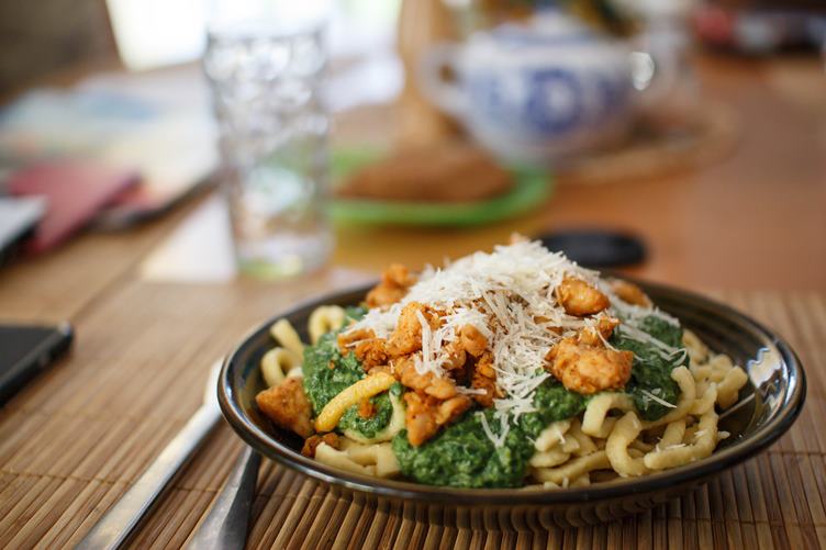 For lunch after a long time, I made a speatzle with chicken, spinach and parmesan... In the afternoon, I'm cuting the garden and sunbathing :D... Mucinqa likes to drink water from my glass... Improving the door with the network for Mucinqa to not be able to open it, because she already knows how to do it...