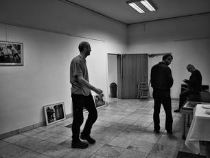 1. Dopoledne jsem šel ven téměř přesně ve chvíli, kdy se maminka vracela z nákupu 2. Ve foyer kulturáku už Pepa Vrážel s Vladimírem Skýpalou instalovali svou výstavu Doma 3. Při procházce Kroměříži jsme zapluli kouknout na moje fotky do VeloCafé a počkali tam na Frantu 4. Po návratu do foyer DK jsem potkal Alču s vnučkou Alčou 5. Potěšilo mě taky když jsem o něco později potkal i Vaška Masaryka - je to bezva chlap a možná ho znáte ze StarDance 6. Pak už se jen dotahovaly detaily a čekalo na vernisáž, kterou zahájil Vláďa Skýpala 7. Fotil jsem autory pro noviny a i to byla zábava 8. Přišlo docela dost lidí včetně velmi milých přátel ze Zlechova 9. Povídalo se dlouho a vykecávali jsme i těsně před odjezdem domů