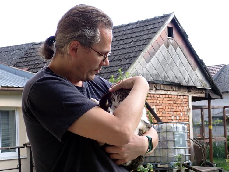 Čaj z bobkové listu a šípku. Na nákupu v Tescu. Oběd z DOOTu. Linda s myškou a sousedem. V televizi žlutý trabant v Timoru.