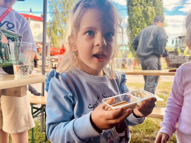 Slavnosti Chleba. Ráno co už maminka s Borisem (jejím přítelem) odešli, protože oni tam musejí být už na chystaní, jelikož jsou jedni z pořadatelů a já jsem tam pak šla později až na 9-10 hodinu. Měli jsme s kamarádkou a ještě moji sestřenkou domluvený dětský koutek, který byl zadarmo a byly tam možnosti pro děti jako malování na obličej (hlavně já, zamluvila jsem si), kreslení a dělání náramku nebo procházkových náhrdelníků s korálkami. Pak co jsme měly ve stánku pauzu tak jsem jela s maminkou spanilou jízdu a po tom nás zase čekal dětský koutek. Po 2 hodinách už byl konec a ještě se odjela jízda vláčkem pro traktoristy a pak už jsem šla domů.