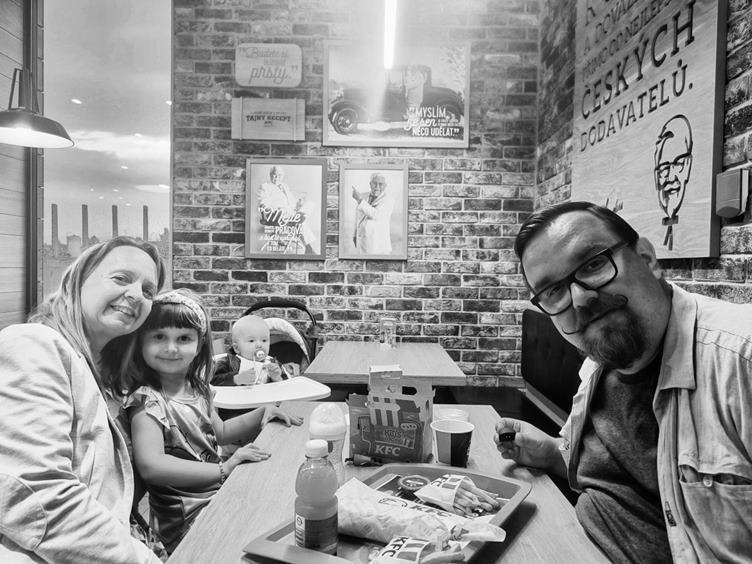 1. Když u školky sypou popeláři, musí všichni rodičové čekat 2. Jel jsem pro nějaké dary do kroměřížské pražírny a ochutnal jejich překvapivě dobrou kávu 3. Odpoledne jsme vyrazili do Brna 4. Od Petra Lindnera jsem kupoval koloběžku, která by mě měla unést-Anežka se k němu bála vůbec vlézt, ale pak si s ním i hrála 5. Od Petra jsme jeli k Silvě a její mamince do Rajhradu na návštěvu 6. Anežku nejvíc zajímali domácí mazlíčci 7. Filípek byl u tety spokojený 8. Cestou domů jsme povečeřeli v KFC 9. Anežka s sebou měla Elsu a Anu-chvíli jsem přemýšlel, jestli jsem je měl vůbec kupovat