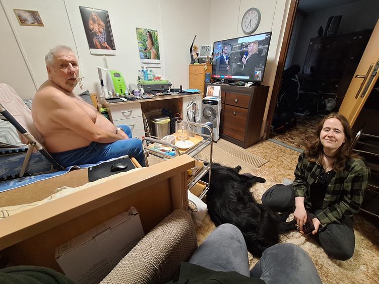 Už po 3.ranní lezu s Ramonkem ven.. Není mi vůbec dobře, noha mne strašně bolí.. Alfi se hrozně snaží mne rozveselit, abych nemyslela na bolest. Jdeme do hospůdky na pivo a Alfi na vodu s citronem, což je samo o sobě dost neuvěřitelné😆 Nicméně je to pravda pravdoucí a já se pobavila a trochu to pomohlo.. Večer k nám přišla na návštěvu Lucinka a Ramónkova radost neznala mezí.. Noční konfrontace.. Šnek vyhrál, šoupla jsem ho do trávy... Jo a volby dopadly dle očekávání.