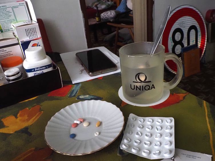 Toto je slušná organizace, vždy pěkně poděkují...:-)nevelkými, leč pravidelnými dary si v tomto směru vykupuji čistě svědomí...Vnouček Oskar dnes překvapil...při tom zrádně zakrouceném "eS" si jentaktak nepřekousl jazyk, zlatoušek...:-) Toliko můj předposlední návrat do rodného kraje, poslední bude ten definitivní...poštěstí-li se mi ještě nějaký další návrat, bude zase předposlední...Tak na zdraví...douškem "flekovskýho" od Maxíků...