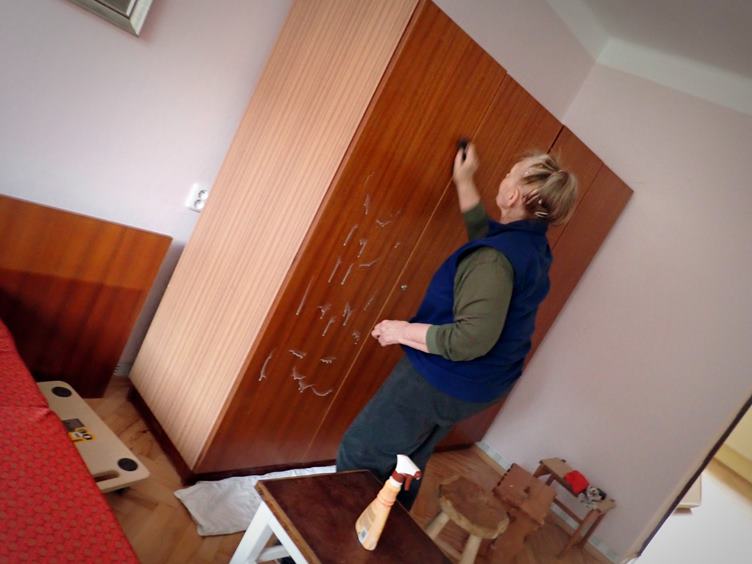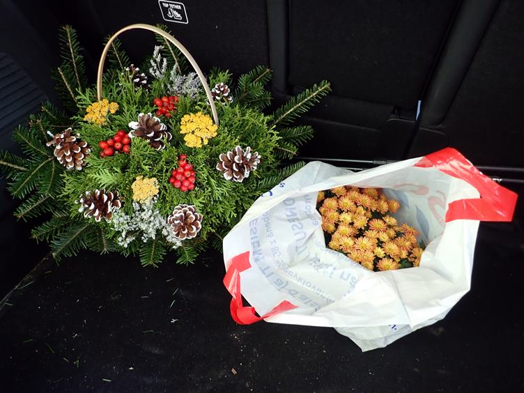 Ráno na náměstí v Holešově bylo prázdno... Jeli jsme koupit výzdobu na dušičky... Také v Tescu připomínali helouvín.... Odpoledne jsme ještě uklízeli... A pak zavezli věnec a kytice na hrob... U zahrady se ulomila branka - Vlastik se na ni podívá a řekne nám, jak ji spravit...