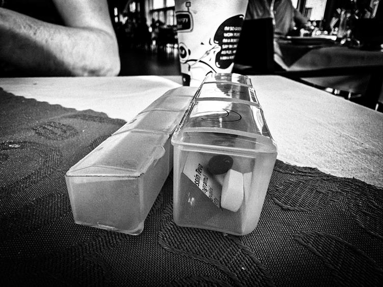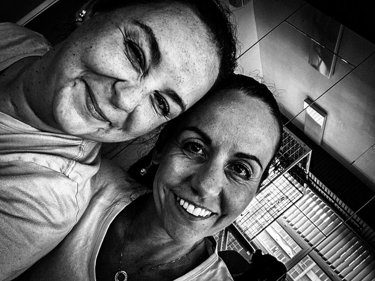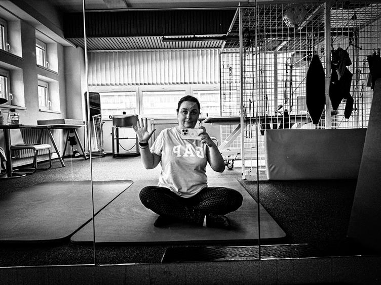 Zkouším chodit po schodech. Měříme si s Frantou lékovky. Od rána si dávám do těla ve fitku a zrovna pokračuji na RehaKlim. Moje fyzioterapeutka Valérie. V lázních mají novinku - teplé lázeňské oplatky, musím je vyzkoušet. Franta miluje chleba - je to naše heslo. Ještě, že ho tu mám :-) To potápění mám úplně všude, i na mikině.