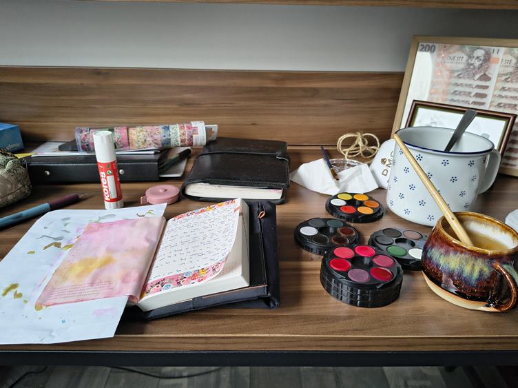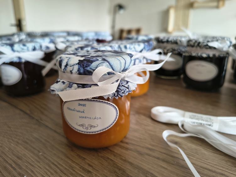 Ranní čaj dneska doprovází kreativní chaos. Pak si chci jít dát sprchu, ale chlupaté miminko má attachment issues, tak místo toho musím chovat. Hlavní akcí dne je zdobení domácích marmelád, co půjdou do vánočních dárkových taštiček. Dost mě to zmohlo, tak odpoledne projednou dělám, co se ode mě na té mateřské očekává, tedy ležím na gauči. Večer jedu na Žižkov na háčkovací posezení - nechtělo se mi, ale jsem ráda, že jsem se vykopala, bylo to jako vždycky moc fajn :)