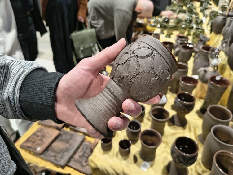 Po delší době týden trochu líně focený na telefon, protože kapacity jsou teď omezené a tuhle životní etapu chci mít radši zachycenou blbě než vůbec. Přecijen jsem už definitivně v režimu "dýně" a skřítka se může vykulit na svět každým dnem. Jako na potvoru zrovna dneškem skončilo dlouhé období sluníčka a modré oblohy a začalo období mokra, zimy, tmy a venkovního kekele. Pracuju na svetru - jde mi to pomalu, ale baví mě to. Vyrážíme na jakousi historickou šermířskou burzu (stejně jako celá dlouhá fronta dalších lidí, ještě že jsme si vzali deštník), částečně podpořit partnerovu ségru, která tam prodává se stánkem, a částečně se podívat na doplňky k jeho kostýmu na historické akce - nakonec si pořídil tento hliněný pohárek. Na pozdní oběd se stavujeme v restauraci a večer už jen odpočíváme.