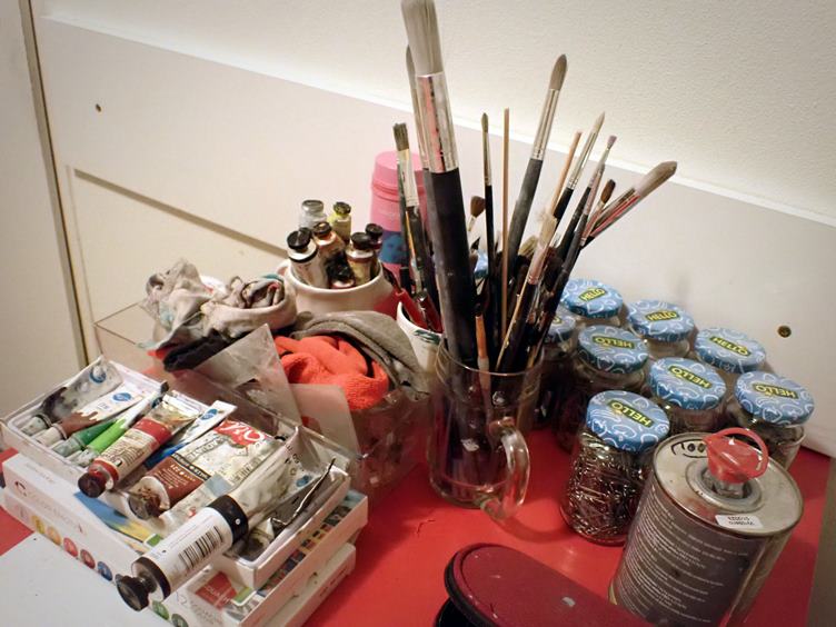 Role papírových utěrek... Kočka u misky s granulemi... Zmrzlá zelenina vytažená z mrazáku.... Polévka... V televizi v pořadu Z metropole parníky... Oběd... Káva s koláčky... Komín... Po čase reset malířských propriet...