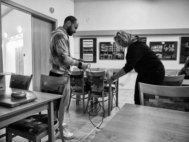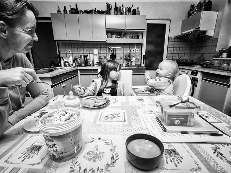 1. Filda se opět rozhodl vstávat s mámou a tak mi dělal společnost u snídaně 2. Anežka chtěla vyfotit s pěknými mráčky u školky 3. Vařil jsem další vývar 4. Pavla po návratu krmila Filiho 5. A když šla s Anežkou na gymnastiku, opravovali jsme s Fildou dveře v obyváku 6. Kuba Halama měl dnes cestovatelskou přednášku o Japonsku a Číně, s přípravou pomáhali první hosté 7. Účast byla hojná a bylo to moc fajn, Kuba to zvládnul profesionálně 8. Opět večeře v kruhu rodinném 9. Ještě pár týdnů musíme s Pavlou každý večer píchat a ona si to užívá víc než já
