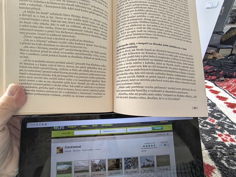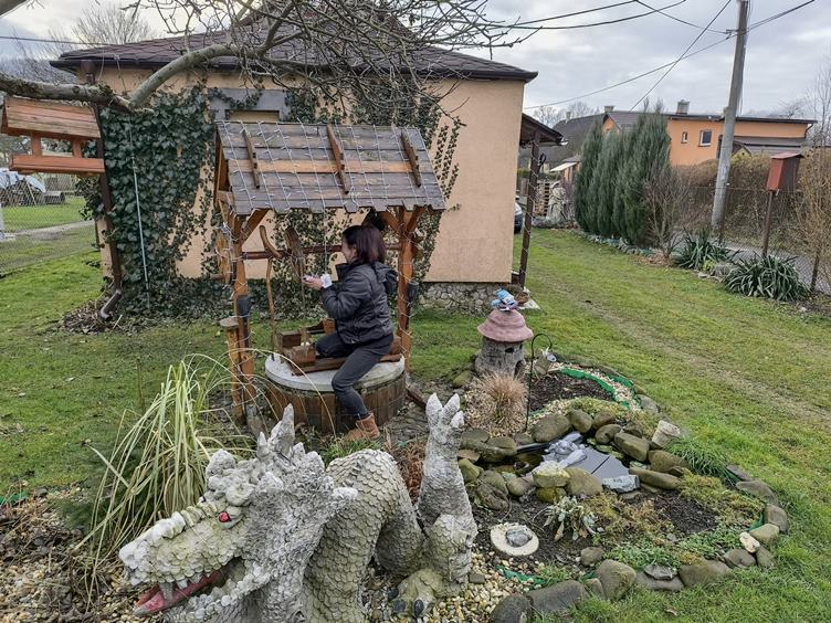 (1) Hela vymyslela novou spižírnu (2) Ve knize Morgenland se děj odehrává i v Ostravě. Dívám se na WoL, co jsem dělal v inkriminovaný čas roku 2015 (3) Ilča zdobí studnu (4) Společné foto (5 Máme objednaný stůl v Kolovně (6-7) Plán byl koupit kapra v Bille nebo v Žabni, ale po cestě do restaurace jsem viděli ceduli s nápisem "Prodej ryb". Nikde nikdo, děti s pomocí Hely si sami ulovily čtyřkilového kapra. Byl to pro zážitek, nejen vidět kapry, jesetery i jiné ryby. Cena ? 115 kč za kilo. Příští rok si to zopakujeme (8) Po cestě na jedno, na další večer už nedojde (9) Ovečka se líbila