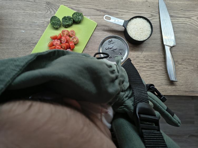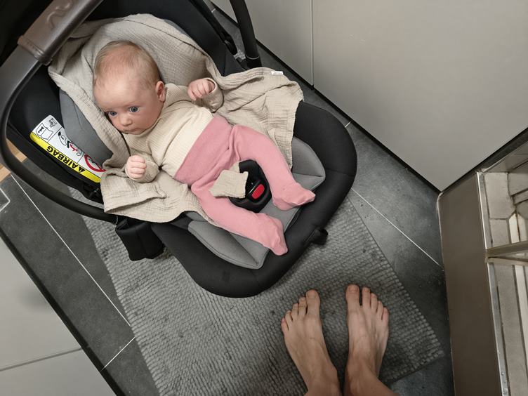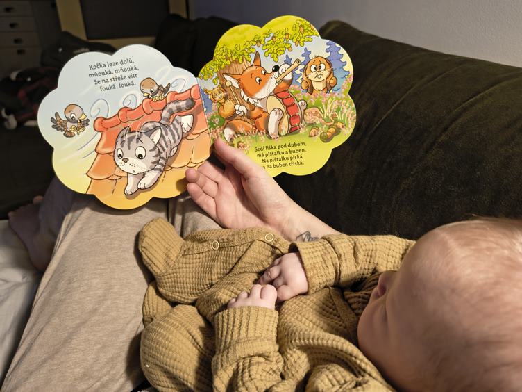 Vyspali jsme se špatně a vstáváme ještě za tmy, dnešek bude náročný. Čteme si říkadla. Zatím jediná cesta ke klidné sprše, když máme tátu v práci, je s pozorovatelem ve vajíčku. Johanka konečně zase usnula, bohužel pro mě v takové poloze, že kdybych chtěla spát taky, spadnu z gauče, takže já spánek nedoženu. Pak musíme převléct, protože si princess poblinkala celý rukáv. Dopoledne trénujeme pasení koníčků a pak si vařím krémové rizoto k obědu. Vím, že na opravdové krémové rizoto mám špatnou rýži, ale venku prší a já neumím natáhnout pláštěnku na kočár, takže do obchodu se teď nedostaneme. Chutnalo mi to ale i tak :) Pak přišel tatínek z práce a přestalo pršet, tak jdeme rychle na procházku, než bude tma. Večer koupání.