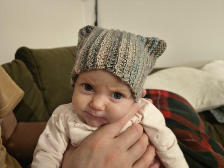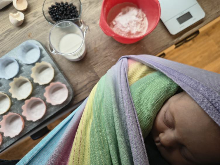 Krásné slunečné nedělní ráno, užíváme si domácí pohodu. Dopoledne se jdeme provětrat a nasbírat nějaký vitamín D, po obědě dáváme Johance koupel, což ji pochopitelně vyčerpalo. Pak už jen pečeme borůvkové mufiny, aby bylo po víkendu co na svačinky, a před spaním ještě rychle dodělávám Johance tu čepičku. Zjevně si finálním lookem není moc jistá, což chápu - pořád jsem přecijen v háčkování začátečník. No a to je za tento týden vše. Mám tak trochu dilema, současně chci tyhle kouzelné chvíle s pidižvíkem mít co nejlépe zachycené, abych se k nim mohla snadno vracet, ale současně chci být s ní teď a tady a ne pořád koukat do telefonu nebo na ni mířit foťákem. Takže... zase určitě někdy něco přidám, ale nebude to hned. Budu to dávkovat, vždycky jednou za čas :)