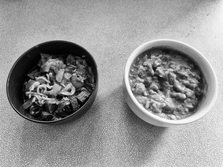 6. Tak schválně jestli poznáte, která z těch misek je můj oběd a která Filípkův ;)