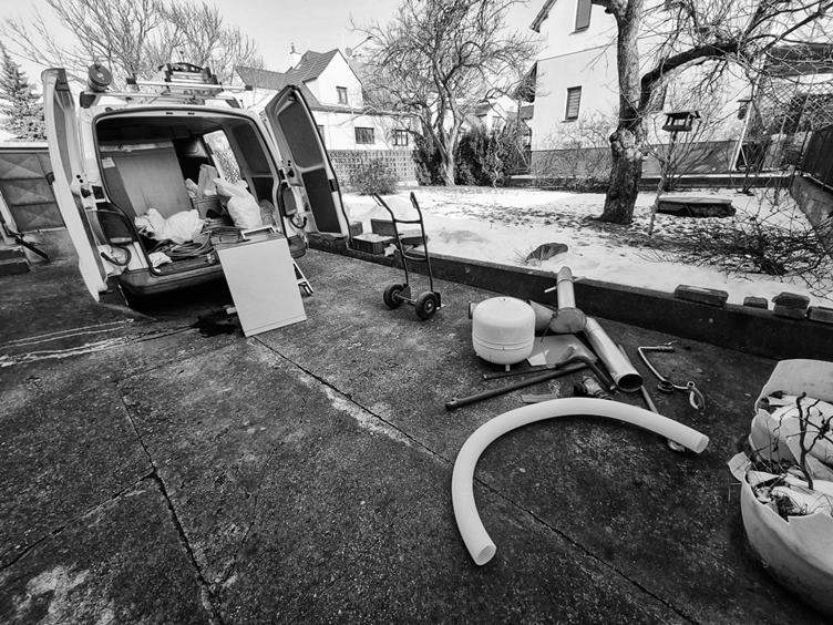 1. Filípek dneska po probuzení docela řádil s babičkou 2. Dole v ohrádce se pak snažil sám obléct 3. Pánové kotlaři měli vše potřebné s sebou a makali celkem svižně 4. Filimu v usnutí a spaní nezabránil ani kravál od vrtaček 5. Poslední krok, odvzdušnit topení 6. Tak a je to, místo velké staré almary máme malou skříňku na zdi 7. Chci být zase dítě! To že jsme ještě netopili jim bylo fuk a zahřívali se blbnutím 8. Když byly holky na bruslích, našel jsem si čas na fotky 9. Zítra se jde na ples a já zjistil, že se vejdu do svého svatebního obleku