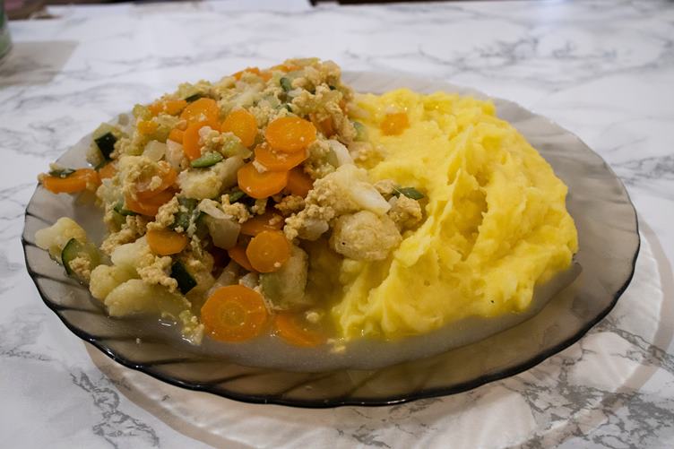 Nasnídám se. Dnes nejdu ven, tak doma nacvičuji schody. Trošku zabalancuji na židli a vyměním žárovky. Umyji nádobí. Nechám Šmudlu vyluxovat, abych mohla cvičit na zemi. Dobrá večeře. Povídáme si s Terezkou. Umýt a spát.