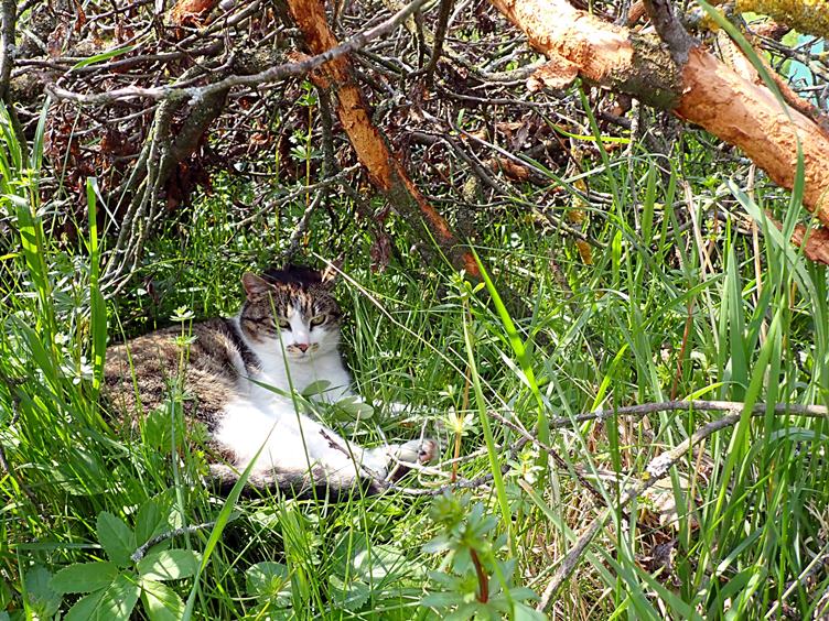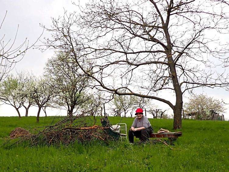 Namazal jsem se a nasnídal a šup po zimě na průzkum na zahradu... Kulovačka krásně kvete... Odpoledne na zahradu znovu - tentokrát už likvidovat hromadu uschlých větví z loňského prořezávání... Ovšem až po přeřezání zrezlého zámku... Některé větve jsou ohryzané asi srnečkami, které k nám na zahradu chodívají... Kočica mě doprovázela a zpod houštiny pozorovala... Prořezával jsem i větve zloděje, na které loni nezbyl čas... Žena lámala suché větvičky... Pohyb na zahradě nás zbavuje bolestí zad a kloubů a více nám chutná... Po dnešním pracovním výkonu jsem si dopřál pořádnou tříchlebovou věčeři...