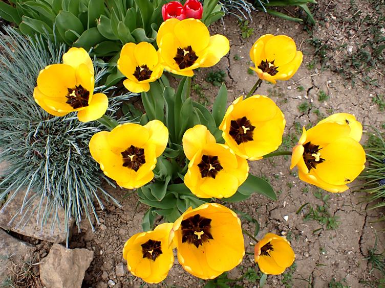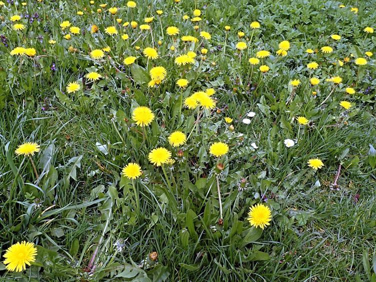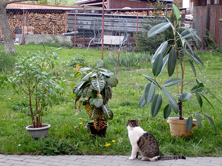 Poznej rozdíl... Na dvorku vyrazily pampelišky... Koláče ke kafi v mondrianovském schematu... Nasypal jsem ptáčkům... Tulipány u sousedky... Pokosil jsem trávu, hlavně kopřivy, okolo kompostéru... Bude pršet, kočico, pokojové květiny jdou ven...