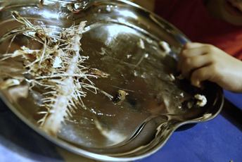 Ráno koukám jak zapadá měsíc. Pod tímto dojmem podvědomě pokračuju v hledání kulatých témat. Vydrží mi to do oběda. Pak jedeme na stavbu vyměřovat schodiště. Filip našel kus polystyrénu a dělá si umělý sníh. Rychle nakoupit. Večer sleduju, jak se do domu snaží schovat před večerním chladem hmyz z celého okolí. Filip baští své oblíbené jídlo - rybičku, co má smutné očičko, protože je pečená (inu vyrůstal na medvědech co se potkali u Kolína).
