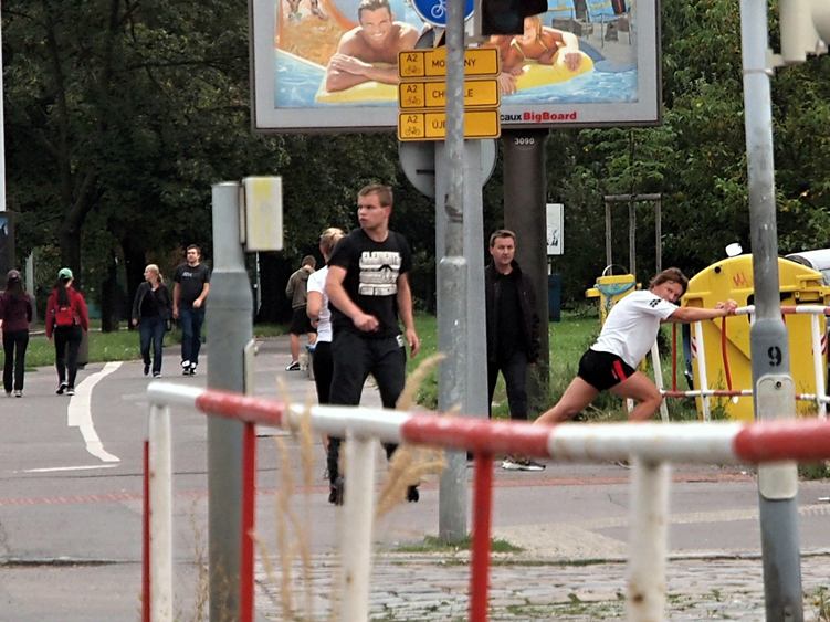 Vykvetl nám ibišek... Fotím cestou do práce Blázinec a Lady XL, v práci pak Lukáše, který přijel z Lázní Bohdaneč učit se dělat web a pak v hospodě a nakonec cestou domů. Zase jsem viděl Babiše, na plastice Barrandovského mostu. Věž husitského zbraslavského kostela se mi ale líbí více...