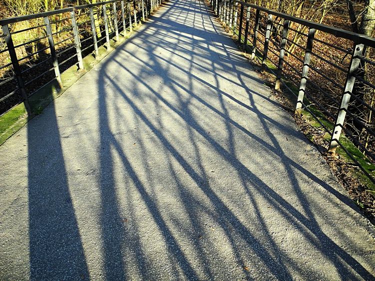 Potěšil mně nový výhonek zamiokulkasu. Dnešek ve znamení dalších detailů z okolí. Slunce maluje na rákosovém plotě, tenisová hala jako bílá kupa, stíny na lávce. Na jejím zábradlí se objevil zámeček. První. Letos se bude lávka bourat a s ní zmizí i zámeček. Doufám jen, že láska V+B to přežije. Kachny čekají na něco dobrého. A panorama laguny. Snad to není proti pravidlům.
