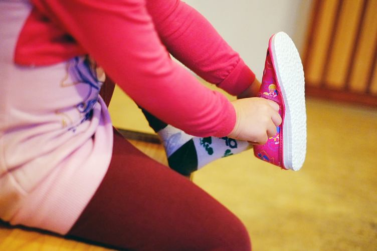 Opět do školky. Obout bačkůrky a jde se opožděně snídat. Oběd a domácí hospodaření. S Walli na vycházce. Buchta při návštěvě a večerní kuchtění....