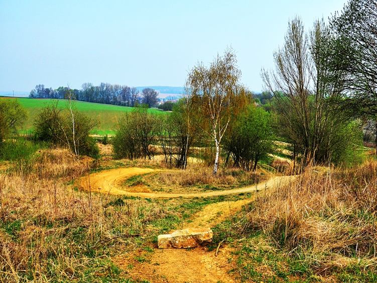 Slunce vychází. Pokouším se o slunce, kutálející se na lampě. Nápad jsem si půjčila, přiznávám. A máme před sebou poslední vodní plochu v našem okolí. Tu neznáme vůbec, tak jsme zvědaví, jaká bude. Je to tůň u Dřevohostic. Není velká a moc se nám nelíbí. Je to tady trochu jako v pralese. Poblíž je nějaký starý, rozpadající se dům, kde není radno se příliš zdržovat, i přesto, že papír tvrdí, že je to tady kamerově střeženo, což ve mně vyvolává značné pochybnosti. Taky se bojím, aby na nás něco nespadlo. Jdeme raději na opačnou stranu, kde objevujeme tréninkovou plochu Endurokros. Tady mohou jen hodně odvážní. A na vlastní nebezpečí, jak hlásá tabule. Výlet zakončíme netradičně. U pálenice ve vedlejší vesnici. Nahlížím oknem a luštím pěkně vyvedený nápis.