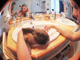 Tento týden se jmenuje králičí. To proto, že se budu snažit zachycovat jedny z posledních dnů mého milovaného králíčka, mazlíka, se kterým jsem vyrůstala. Už několik měsíců nevíme, co dál, bo vůbec nechodí na zadní nožky. Ráno se chladí o podlahu, venku je mu hrozné horko. Potom jedeme na koupaliště, s mamkou si čteme rozhovor z FotoVidea a mamku nadchne natolik, že se jí začne chtít fotit WoL taky. Snoopyho mimo injekcí musíme také koupat a fénovat. Večer běhání...mých prvních 7,5 km! :)) Jinak) rybí očko na iPhone je fakt super hračka!