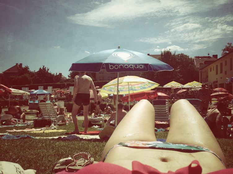 jedu ráno do PH || k obědu smoothie :D || dočetla jsem || Amynka chce, abych si s ní hrála na přetahovanou o plyšáka, vyzývavě na mě kouká :D || celé odpoledne až do večera na koupališti... :))