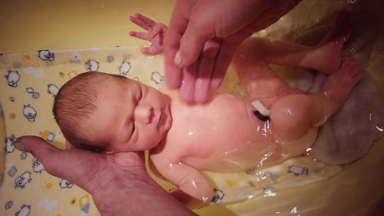 Hurá druhá babí přinesla klasickou zavinovačku (bez ní to bylo v noci docela peklo). Takový navštěvní den. Pavluša kouká na fotky, co "fotila" :) První koupání. Vážíme i doma.